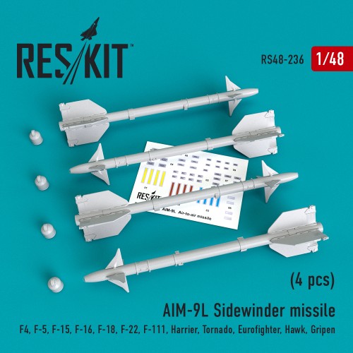 • Reskit RS48-0236 1/48 AIM-9L Sidewinder missile (4 pcs)